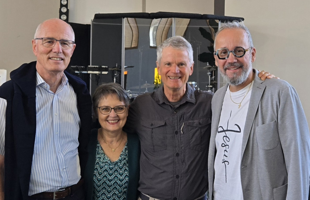 Photo 3: From left to right - Werner, Ulla, me and Robert Fetzer from Moosburg. Robert is a good friend who had hope to walk with me the last stage on Tuesday from Landshut to my home in Buch am Erlbach. He hurt his knee though doing yard work and was not sure whether he could make it on Tuesday. He wanted though to come to Dingolfing in any case to hear what I had to say about Snail-Trail 3.0. I think God spoke to many hearts during the service. The few days with Ulla and Werner did me good. They are great hosts! I might have even gotten back one of those kilos that I had lost on the Snail-Trail.