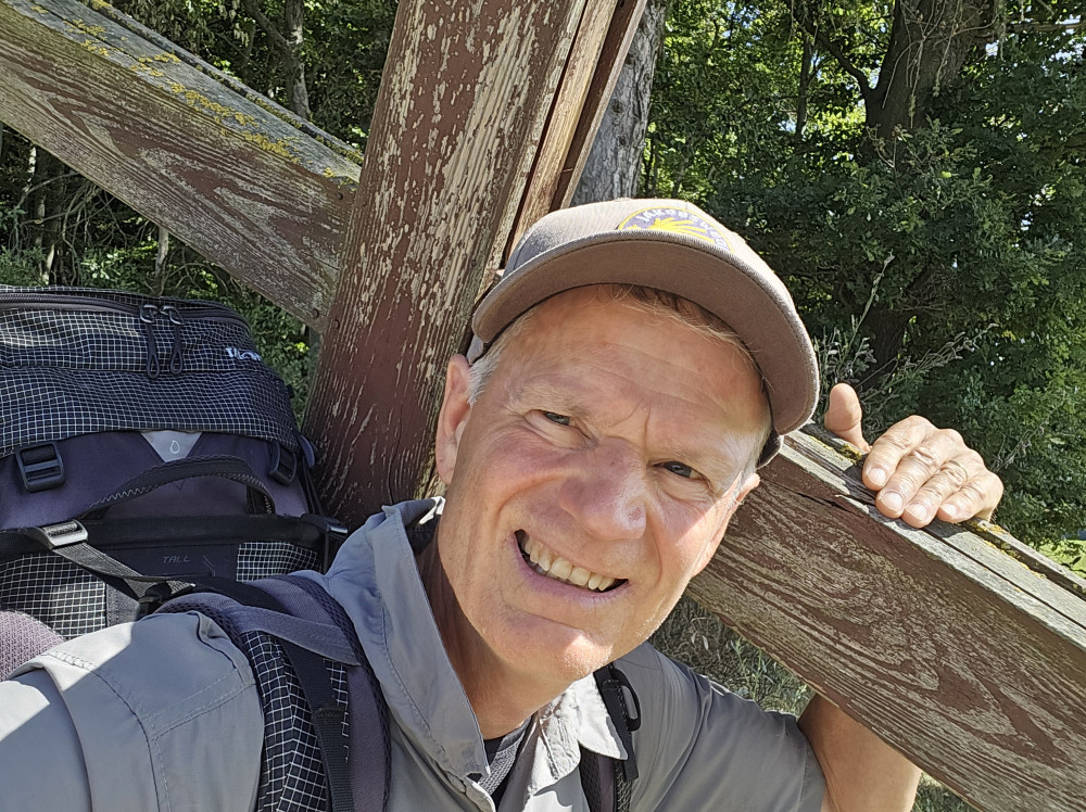 Photo 5: I think this picture sums it up the best. Jesus calls us to take up our cross and follow him. For me it is a backpack that Jesus has called me to bear. So many people are curious to know why an old man like me would be walking with a backpack like that through their country. Their questions become the start of conversations that often lead to talks about life's journey and the Good Shepherd who is there to lead us through it. Walking the Snail-Trail is not always easy, but it is always good.