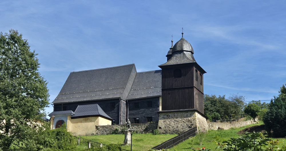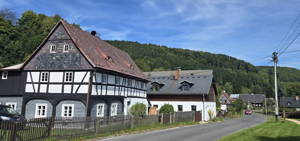 Photo 2: The moutain village of Kryštofovo Údolí (Christopher's Valley). There was a nice bench in the shade there where I had my lunch break.
